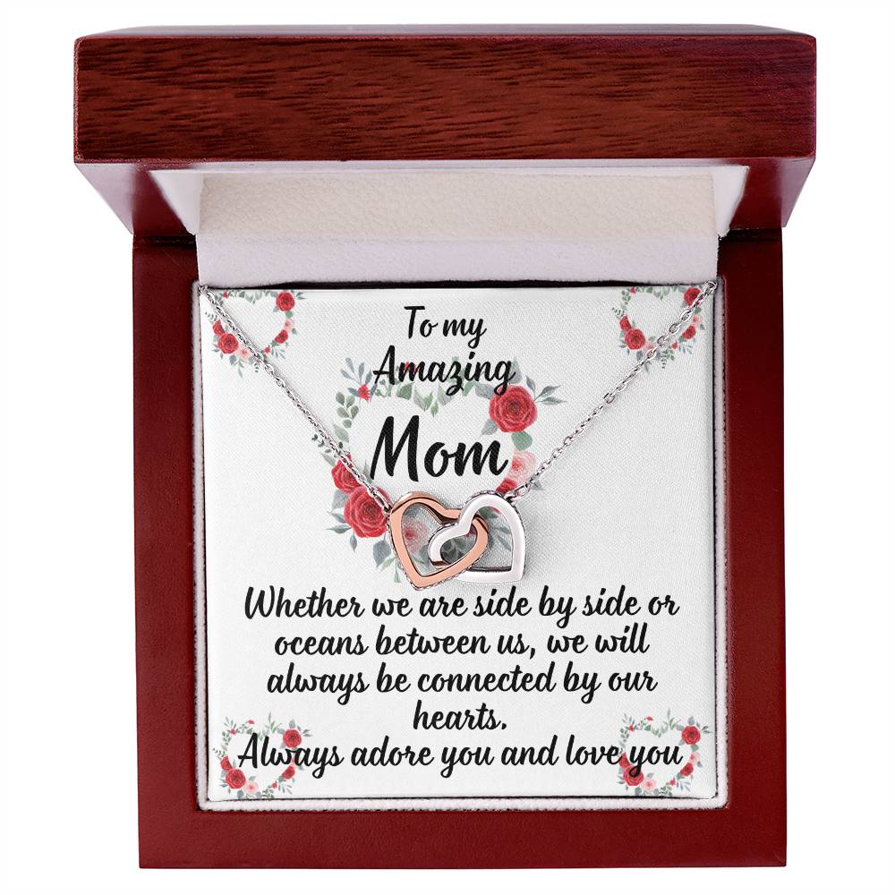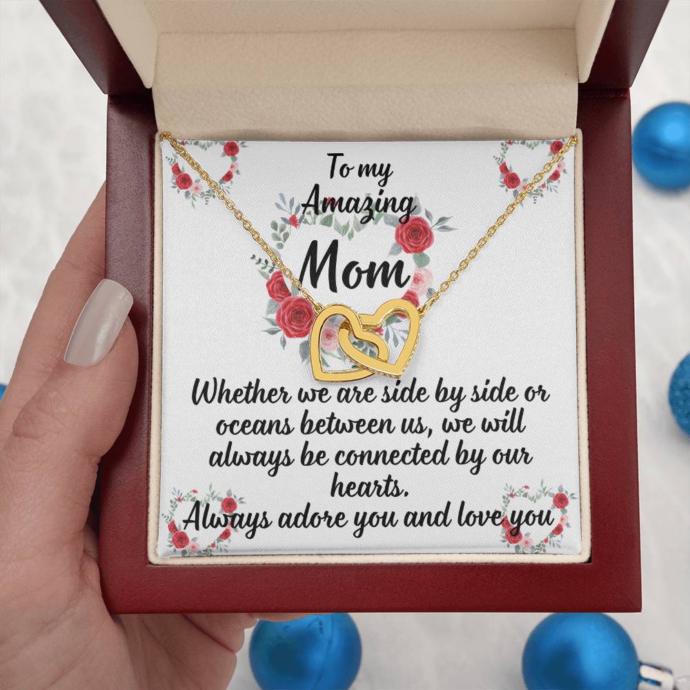 For my mom, I always love you, Interlocking Hearts Necklace (Yellow & White Gold Variants)