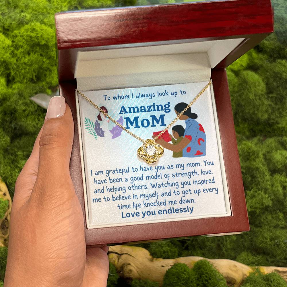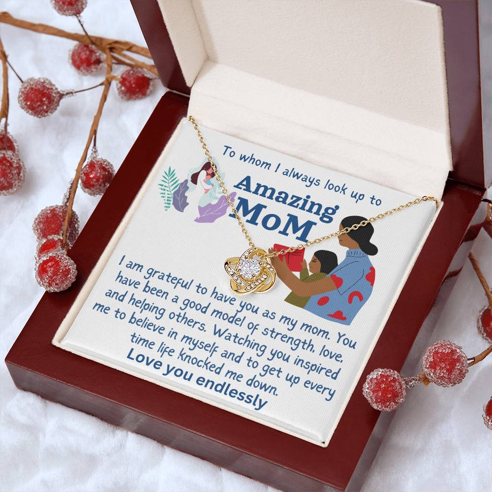 For my mom, I love you endlessly, Love Knot Necklace (Yellow & White Gold Variants)